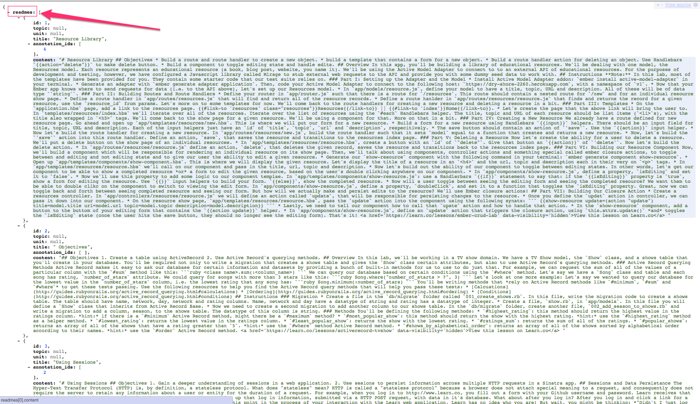 Note that we include the :annotations_ids so that a readme the client-side application that hits our API can easily load the annotations associated to a give readme.