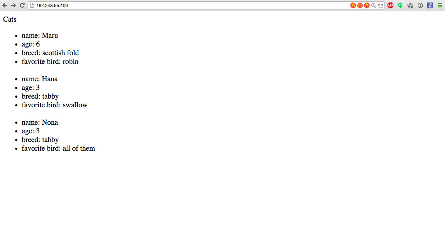 After several hours of piecing together 6+ blog posts and articles, I had finally deployed a super-important cat cataloguing app: