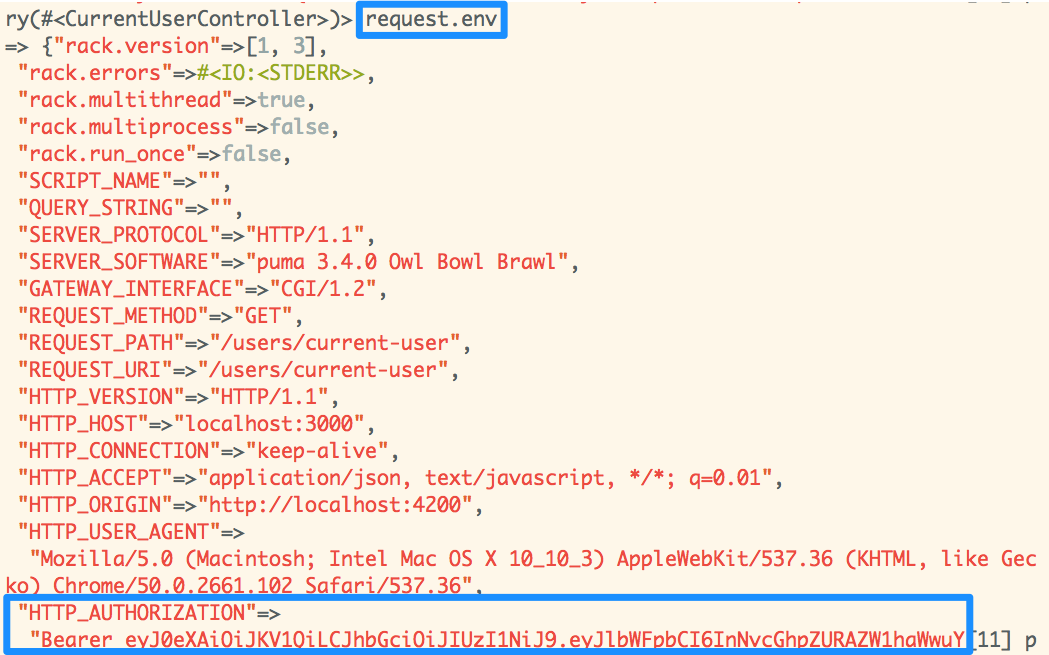 requestobject has a header, or a key, of ["HTTP_AUTHORIZATION"] and if the value of that header includes a realm designation ofBearer. If so... - Grab the token out of the value of that header, which would be something like